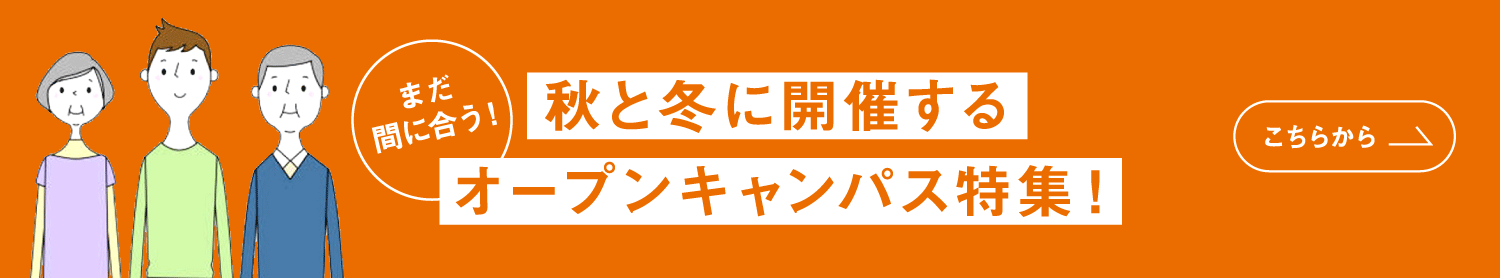 - 2023.11.01 【まだ間に合う!】秋と冬に開催するオープンキャンパス特集!を更新しました。